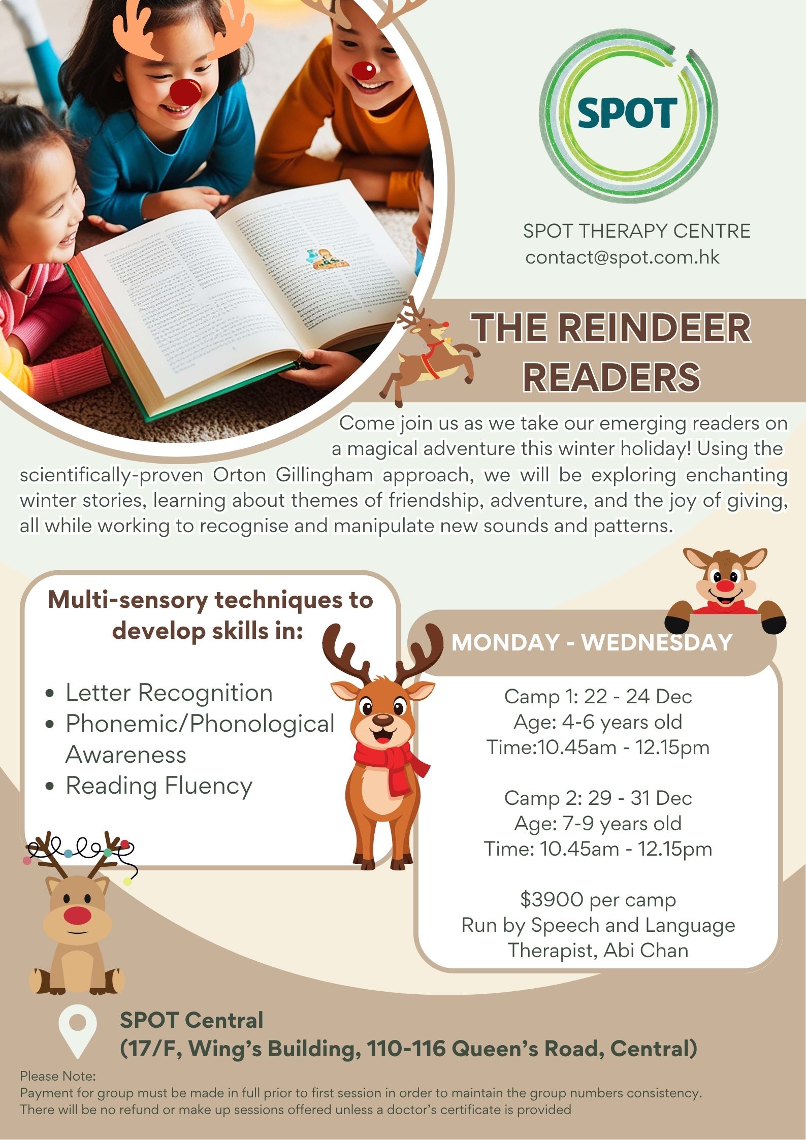 The Reindeer Readers Squad (4-6 year olds) - Christmas CampCome join us as we take our emerging readers on a magical adventure this winter holiday! Using the scientifically-proven Orton Gillingham approach, we will be exploring enchanting winter stories, learning about themes of friendship, adventure, and the joy of giving, all while working to recognise and manipulate new sounds and patterns.