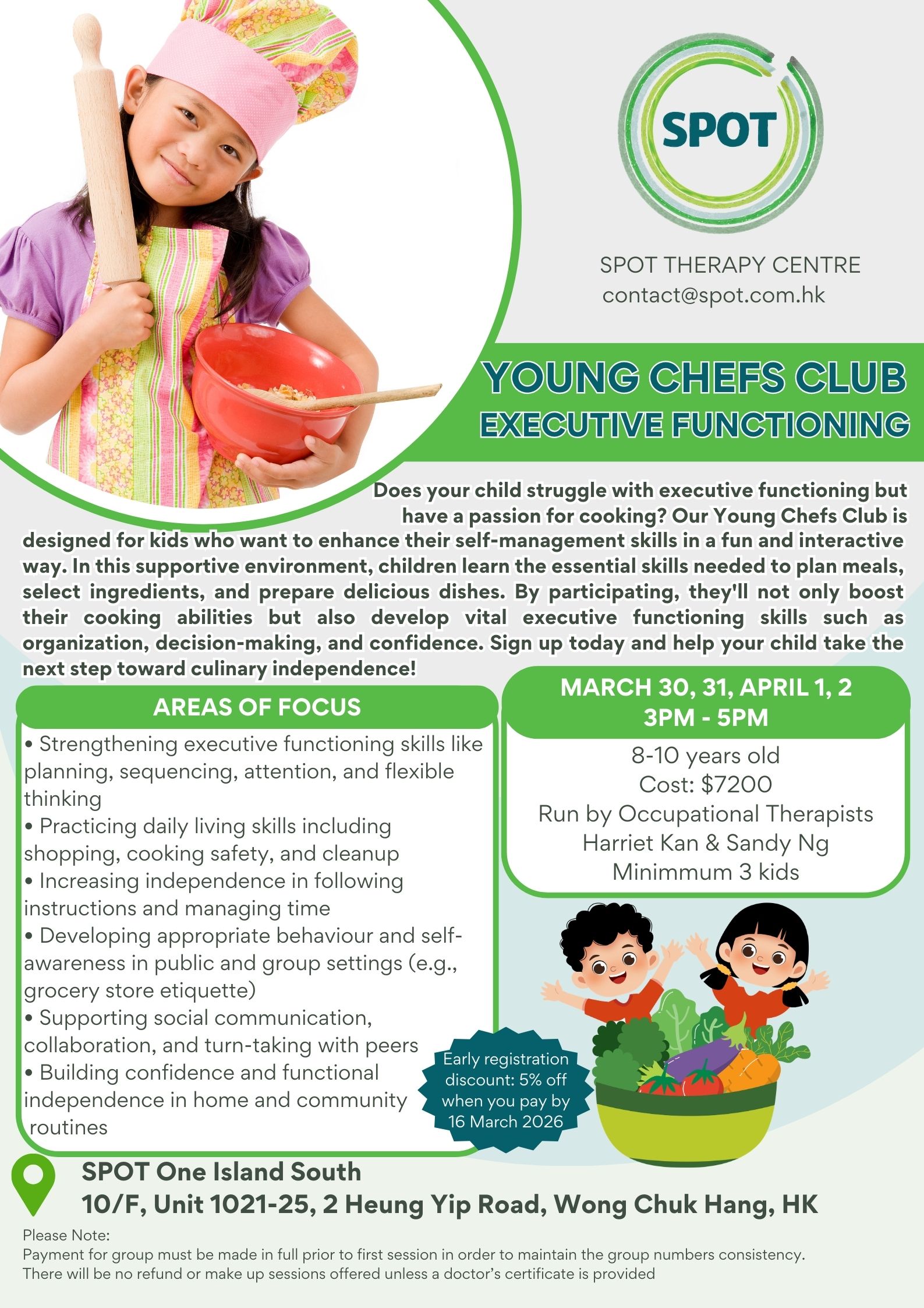 Young Chefs Club - Easter CampDoes your child struggle with executive functioning but have a passion for cooking? Our Young Chefs Club is designed for kids who want to enhance their self-management skills in a fun and interactive way. In this supportive environment, children learn the essential skills needed to plan meals, select ingredients, and prepare delicious dishes. By participating, they’ll not only boost their cooking abilities but also develop vital executive functioning skills such as organization, decision-making, and confidence. Sign up today and help your child take the next step toward culinary independence!